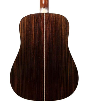 Inlaid in stunning abalone pearl and appointed with gold tuners, it's more than a Dreadnought: it's an heirloom. Premium East Indian rosewood and Sitka spruce combined with hand-carved scalloped bracing to produce rich, powerful, complex tone.