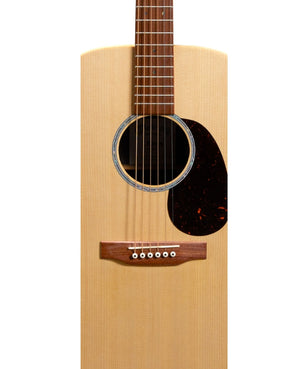 The remastered X Series is made to play. The acoustic-electric D-X2E features the iconic Dreadnought body shape, now available in three eye-catching high-pressure laminate (HPL) patterns—mahogany, Brazilian rosewood, or ziricote. The satin spruce top features an elegant abalone pattern rosette, while HPL back and sides give you durability and classic Martin style. Playability enhancements include a thinner fingerboard with a gently beveled comfort edge and refined string spacing, and a modernized bridge contour for a smooth and comfortable playing experience. Its signature size is loud and projective with strong bass, lending itself to any genre and experience level. The D-X2E also features a select hardwood neck, fingerboard, and bridge, and Martin E-1 electronics with a built-in chromatic tuner and volume, tone, and phase controls, letting you plug in and play at any volume. All X Series models come with a softshell case.