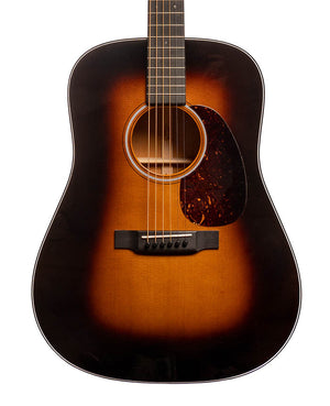 The Martin D-18 (Sunburst) features a sleek, modern High-Performance Neck for enhanced playability. The D-18 adds a Sitka spruce top to the genuine mahogany back and sides. Perfect for the intermediate and advanced player. Standard ''X'' Scalloped, Forward Shifted bracing pattern. Tuners are nickel open-geared with butterbean knobs. Visit Guitar Gallery to view and play this amazing Martin D-18.
