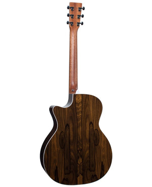 With a gorgeous glossed spruce top and ziricote back and sides, this Grand Performance cutaway model is a great sounding guitar at an affordable price. New to this model are stunning mother-of-pearl pattern fingerboard and rosette inlays, a multi-stripe rosette border, and white binding. It has an FSC® Certified Richlite® fingerboard and bridge, gloss body, and a hand-rubbed neck finish. Also new to this model is a Martin E-1 electronics package with a built-in soundhole tuner so you can tune up any time without using a pedal. This guitar comes with a burst option and Premium Soft Shell Case so it is Road-ready to join you on all of your adventures!