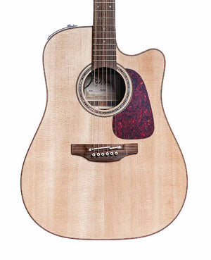Other performance-enhancing features include a convenient Venetian cutaway for easy access to the upper reaches of the fingerboard, and Takamine’s asymmetrical neck profile – which is slightly thinner on the bass side so that it fits the natural shape of your hand, resulting in a comfortable feel and improved playability. The split bone saddle provides more accurate intonation, while bridge pin positioning optimizes the break angle to improve sustain and presence.