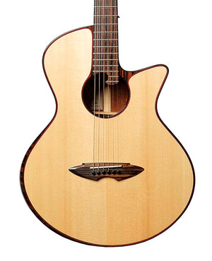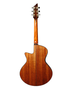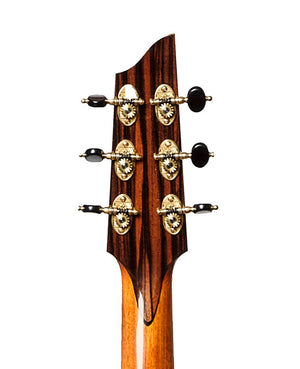 This is a custom C2 with a 4. 3/8” (111mm) depth at the Tail, The shallower body puts it more into OM territory compared with the Standard C2 depth of 4. 5/8” (118mm) The sound is lively and focused with quick attack and the strong fundamental that one can expect from Mahogany. The bass is tight and responsive with a throaty growl. The mids are clear and focused, and the trebles have that fat singing quality. A wonderful finger-style guitar with plenty of volume, sustain and natural reverb!