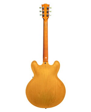 Each Custom Shop ES-335 Fat Neck has a plain maple top, back, and rims with a three-ply maple body construction and that vintage lightweight maple centerblock. The pearloid dot inlays give the guitar its distinctive moniker, and they are balanced by a single-ply cream binding along the neck, top, and back.