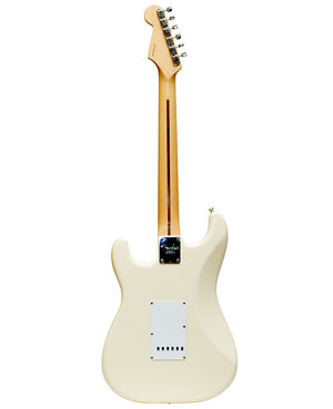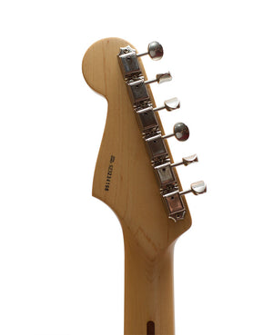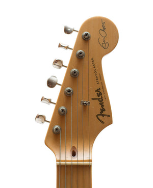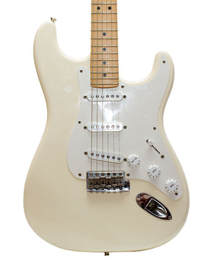 Originally, this Strat used Lace Sensor pickups, but a switch was made to Fender Noiseless pickups in 2001. Another unique feature is a blocked tremolo tailpiece made to Clapton's specification. The Body Style is an offset solid body. Alder body, Maple neck, Maple fingerboard. Bolt-on neck, dot inlays, three single-coil pickups, five-way pickup selector, blocked tremolo."