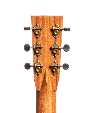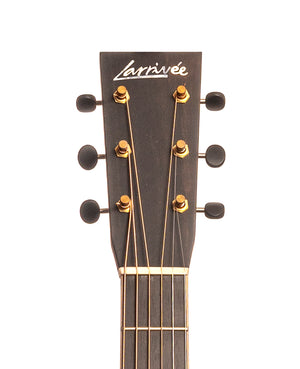 The traditional series was created with two things in mind. Create an instrument with traditional 'vintage' features like a flat-top headstock, hand-carved volute, and diamond inlays. But at the same time maintaining the unique tonal balance of the standard Larrivée symmetrical parabolic bracing system. An enlarged soundhole allows significantly greater mid-range punch, emphasizing the low end, and increasing overall volume. This 60 Series features our highest grade Rosewood, herringbone trim, traditional angled bone nut, and available in custom vintage Tobacco Sunburst finish top. The casted bronze open-back tuners feature engraved design work by Wendy Larrivée. One of the many fine details that put this series in a category of their own.
