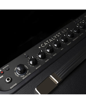 The Catalyst® family includes three dual-channel combo amplifiers that perform like traditional guitar amps—while providing the increased versatility of modern amplifiers. The Catalyst 60 is perfect for practice, recording, and performing in small venues. Catalyst amplifiers offer six Original Amp Designs—ranging from pristine clean to modern high-gain—crafted using our renowned HX® sound design techniques to ensure exceptional tone and feel. These powerful and sturdily constructed combos are equally suited for stage or studio use, and feature an XLR line output and a 4-channel USB recording interface. Also included are Boost circuits customized for each amp type, a dedicated Reverb section with six reverb types, 18 additional effects, an effects loop, a Power Amp input for using Catalyst as a powered speaker, MIDI capabilities, and power attenuation options for playing at any volume. The free Catalyst Edit app for desktop and mobile devices provides deep editing capabilities. Add an optional LFS2 footswitch for even more flexibility, and an optional cover to protect your combo.