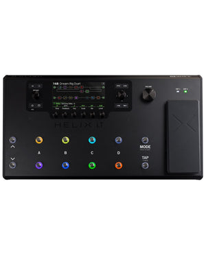 The streamlined Helix® LT boasts the same dual-SHARC® processing and professional-quality HX®Modeling found in the flagship Helix Floor and Helix Rack amp and effects processors—outperforming all other products in its class. Features include a player-friendly interface with a large color LCD, capacitive-touch footswitches for easy editing, an onboard expression pedal, analog, and digital I/O, and a USB audio interface.