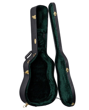 Guitar Gallery is a proud reseller of Martin guitars and accesories. This black hardshell case for 14-fret Dreadnought style guitars features rugged 3-ply construction with a vintage-inspired exterior and brass-plated hardware. The interior is form-fitting with a green padded plush lining.