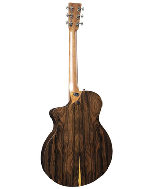 Do you want to play leads all the way up the neck? Play longer? Play louder? Now you can with this super-comfortable, easy-to-play acoustic-electric from Martin. The SC-13E, with its patented Sure Align® neck system, gives you full access to all frets so you can comfortably reach those high notes. It’s also equipped with a new, low-profile velocity neck barrel that ergonomically accommodates your hand as you move up the neck, giving you the comfort and playability of an electric. This special edition SC-13E features a spruce gloss top and ziricote fine veneer gloss finished back and sides. The design motif features an aperture rosette inlay with ebony headplate, fingerboard, and bridge. It also features nickel open gear keyhole tuners with skeleton key knobs. This model is available with or without a burst top.