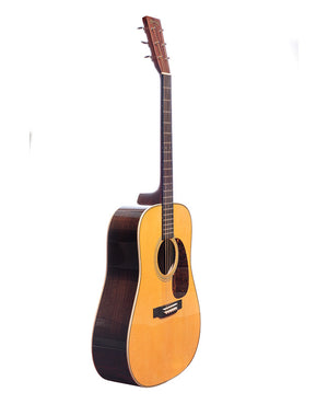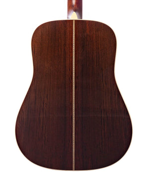 Classic herringbone, East Indian rosewood, ebony and Sitka spruce in the shape that started it all: the Dreadnought. Paired with our most comfortable neck, vintage appointments, scalloped, forward-shifted bracing, and a lifetime warranty. Powerful bottom end, rich tone, and strums that will fill the room—music history made new.