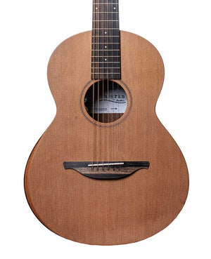 This Sheeran W-03 has a solid Cedar top with Santos Rosewood for the back and sides.  It is also fitted with an LR Baggs Element VTC.  The guitar also comes standard with soundbox bevel.