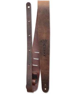 This brown vintage CF Martin debossed logo strap has a worn look and feel that you'll find very appealing. It is a comfortable, lightweight strap that is 2" wide and measures 55" when fully extended. 100% leather and made in the USA.