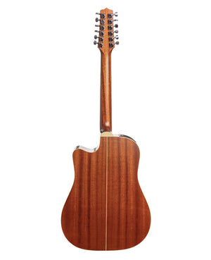 Takamine’s Natural series was conceived to give the biggest and widest acoustic sound possible. The 12-string Natural ETN10C-12 dreadnought is handcrafted in our pro series facility that has been building precision quality instruments for over five decades. Solid cedar tops, solid Sepele backs, a thin satin finish, and no pickguard – anything that could possibly impede the vibration of the soundboard was purposely left out. The voice is sweet and lively – this 12-string guitar responds well to a light touch and gives a satisfying performance when played aggressively. In keeping with the “natural” theme, various woods are used to trim and decorate each model. The rosette is an intricate design using ovangkol and rosewood. The purfling is basswood and fretboard inlays are maple. A pinless bridge makes string changing a breeze. Includes Takamine’s Palathetic™ pickup, known in the industry as one of the most accurate and natural-sounding acoustic/electric pickups. The CT4B preamp has long been the popular choice among Takamine pro artists, providing a warm natural acoustic tone at high sound pressure levels.